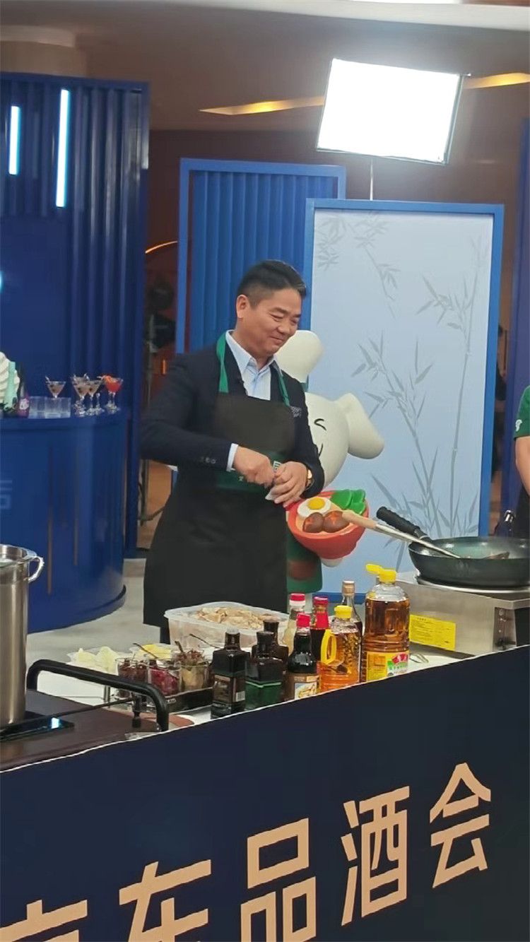 9月16日,在京东首次品酒会上,京东创始人、董事局主席刘强东现身,并为现场观众炒菜,菜品为宿迁四大名菜之一“黄狗猪头肉”,此次品酒会吸引不少关注,在直播平台上也吸引超百万观众。