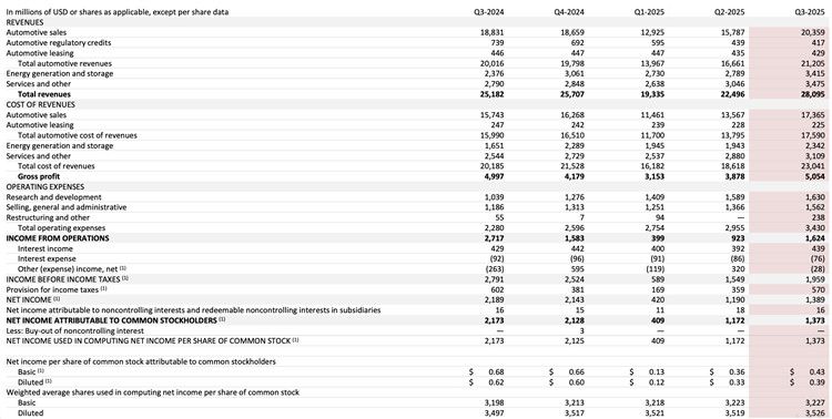 北京时间10月23日,特斯拉发布的2025年第三季度业绩显示,公司第三季度营收280.95亿美元,创下季度营收新高,同比增长11.57%,超出华尔街预期。