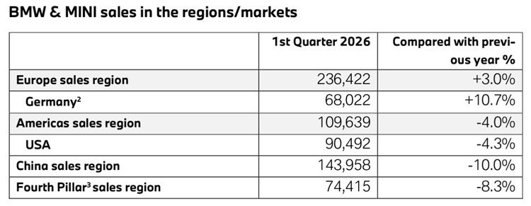 作为宝马全球最大的单一市场,中国市场一季度交付量为14.4万辆,同比下降10%。