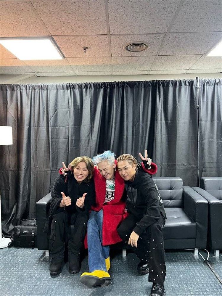 近日,太阳、大声现身权志龙演唱会,三人还在演唱会的后台亲密合照,BIGBANG合体非常有爱。合照中,三人挤眉弄眼表情浮夸,但却亲密贴在一起。