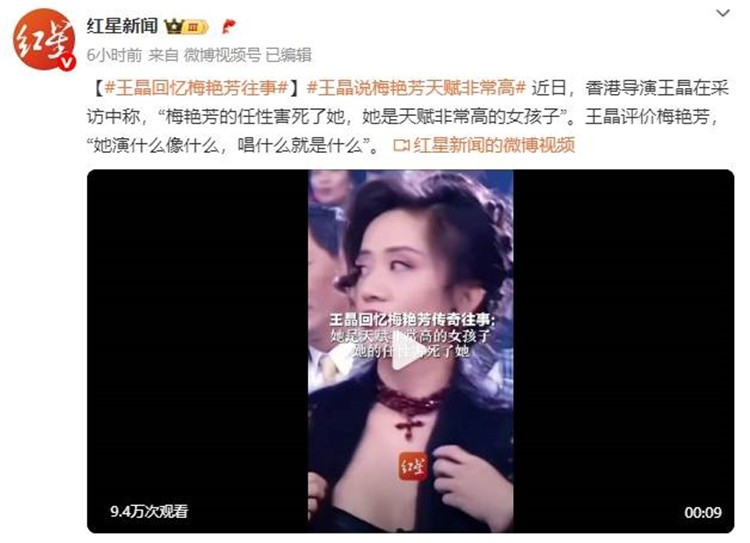近日,香港导演王晶在采访中称,“梅艳芳的任性害死了她,她是天赋非常高的女孩子”。王晶评价梅艳芳,“她演什么像什么,唱什么就是什么”。