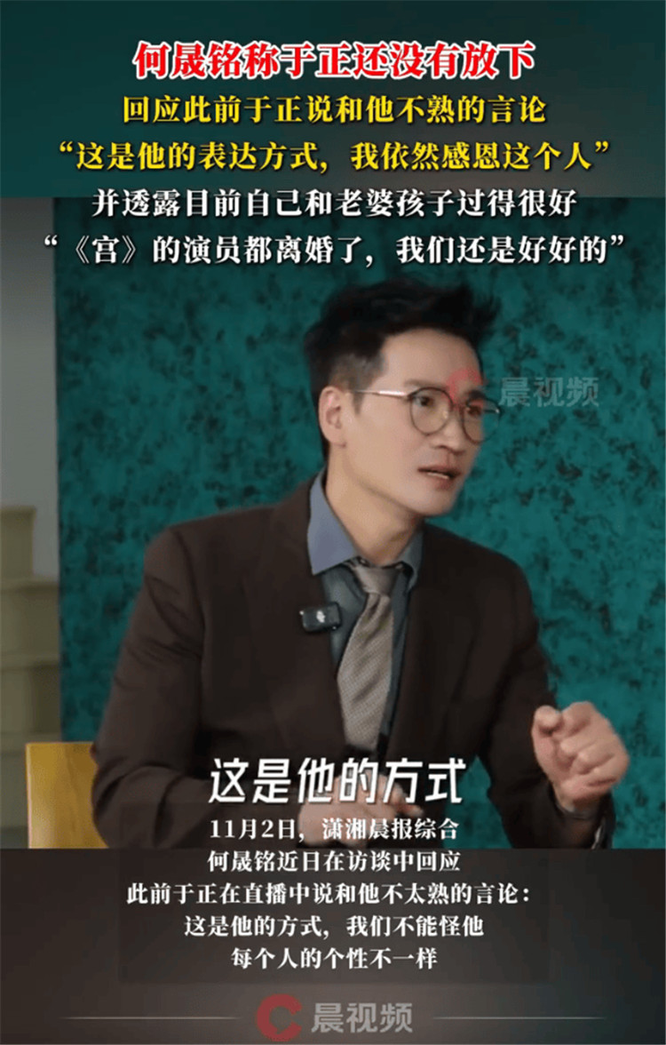 11月2日,潇湘晨报综合。何晟铭近日在访谈中回应,此前于正在直播中说和他不太熟的言论:“这是他的方式,我们不能怪他,每个人的个性不一样。”