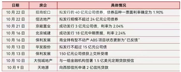10月部分房企融资情况一览