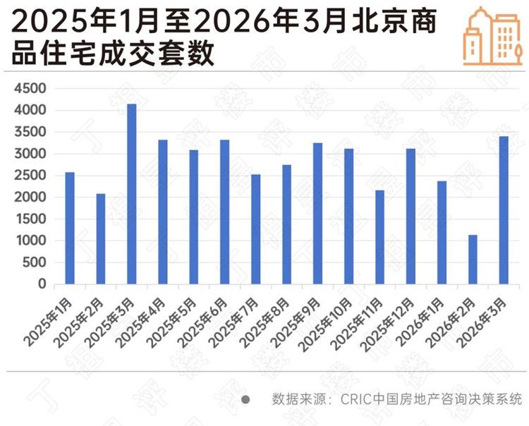 从成交来看,2026年3月北京商品住宅共成交3403套,创近一年新高,仅次于2025年3月。