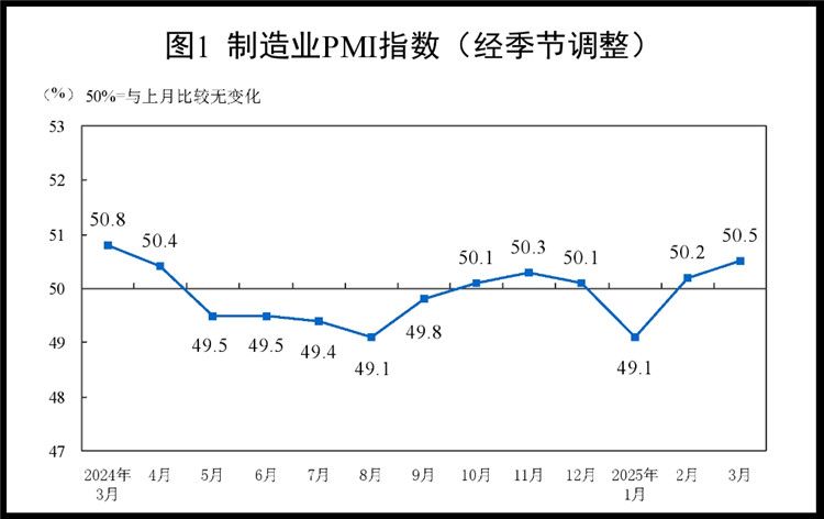 国家统计局服务业调查中心、中国物流与采购联合会3月31日发布数据显示,3月份,企业生产经营活动加快,制造业采购经理指数(PMI)、非制造业商务活动指数和综合PMI产出指数分别为50.5%、50.8%和51.4%,比上月上升0.3、0.4和0.3个百分点。