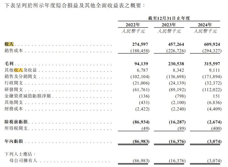 招股书显示,从2022至2024年(以下简称报告期),卧安机器人收入分别约为人民币2.75亿元、4.57亿元和6.1亿元,同期内亏损分别为人民币8,698.3万元、1,637.6万元和307.4万元。