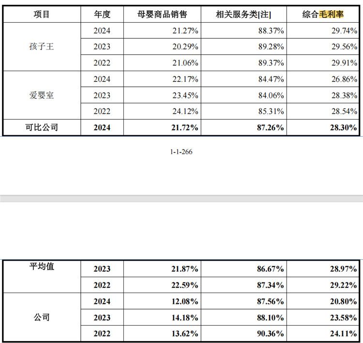 此外,孕婴世界的毛利率也远落后于同行可比公司,报告期内,同行可比公司的毛利率均值分别为29.22%、28.97%和28.3%。