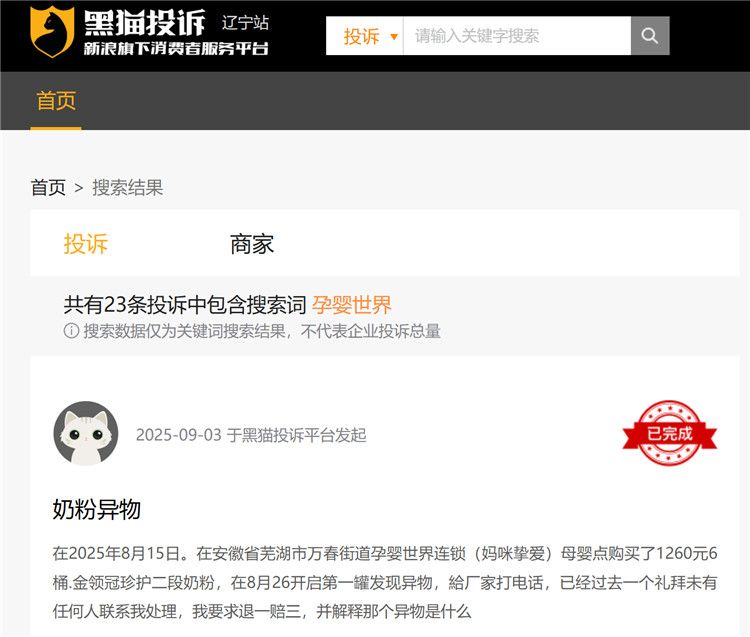除了上述不利影响外,加盟模式也让孕婴世界更难控制其销售产品的质量。近来孕婴世界的产品频繁遭到消费者频繁投诉。据新浪旗下消费者服务平台黑猫投诉平台数据显示,有23条投诉中包括孕婴世界。