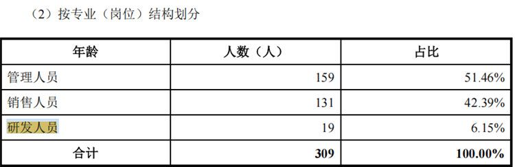 报告期内,孕婴世界的研发人员为19人,占员工总数的6.15%,同期管理人员数量为159人,占员工总数的51.46%,销售人员数量为131人,占员工总数的42.39%。