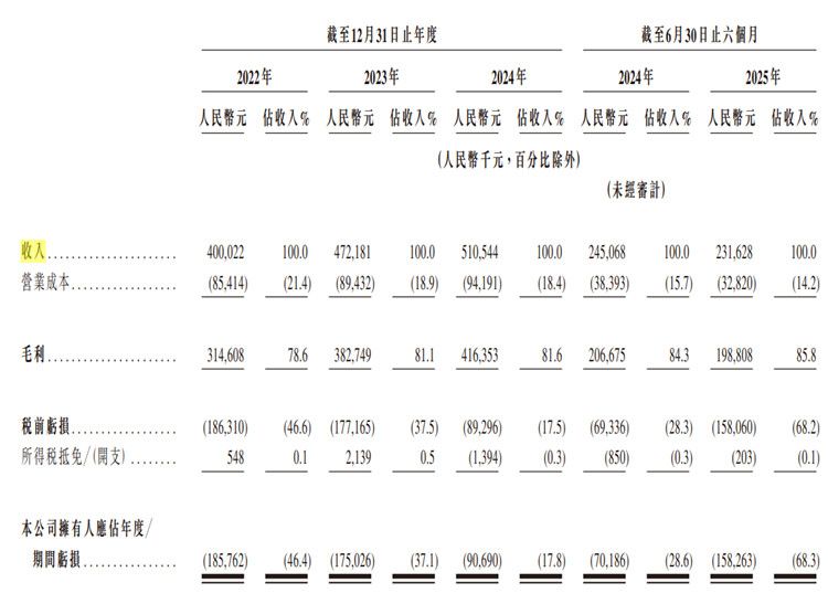招股书显示,在2022年-2024年以及2025年上半年,嗨学网的收入分别为4.00亿元、4.72亿元、5.11亿元及2.32亿元;同期毛利率分别为78.6%、81.1%、81.6%及85.8%。2022年-2024年以及2025年上半年,嗨学网分别亏损1.86亿元、1.75亿元和9069万、1.58亿元,报告期累计亏损超6亿元。