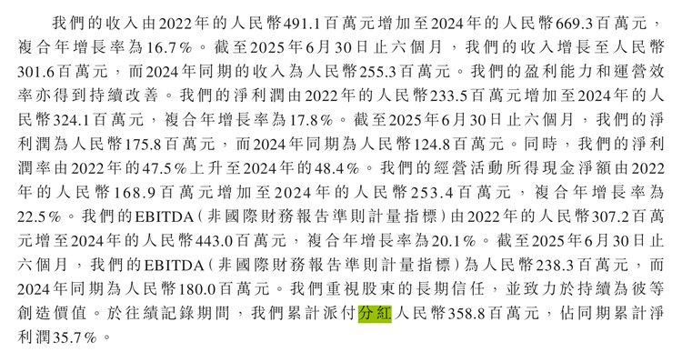 此外,招股书显示,于往绩记录期间,公司累计派付分红约3.59亿元,占同期累计净利润35.7%。