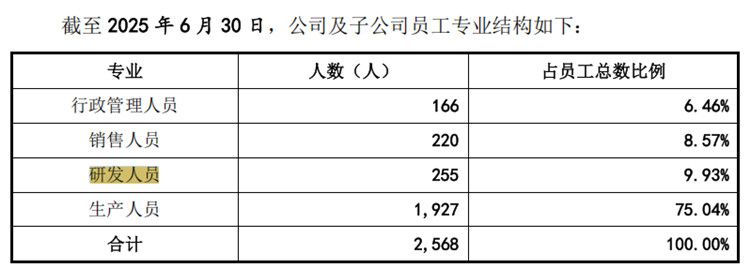 截至2025年6月30日,惠康科技的研发人员数量为255人,占员工总数的比例为9.93%。