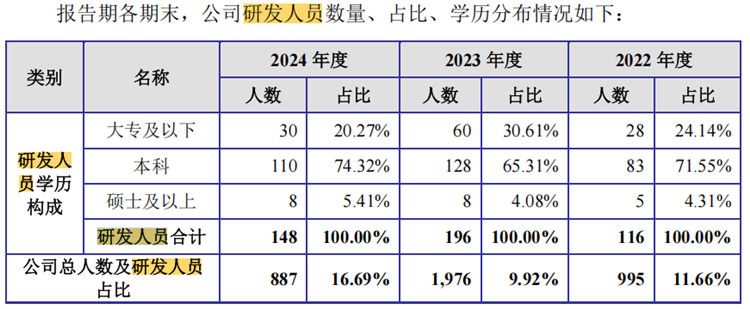 此外,江松科技的研发人员数量出现了起伏。报告期内,研发人员数量分别为116人、196人和148人。2024年研发人员数量出现了大幅下降。