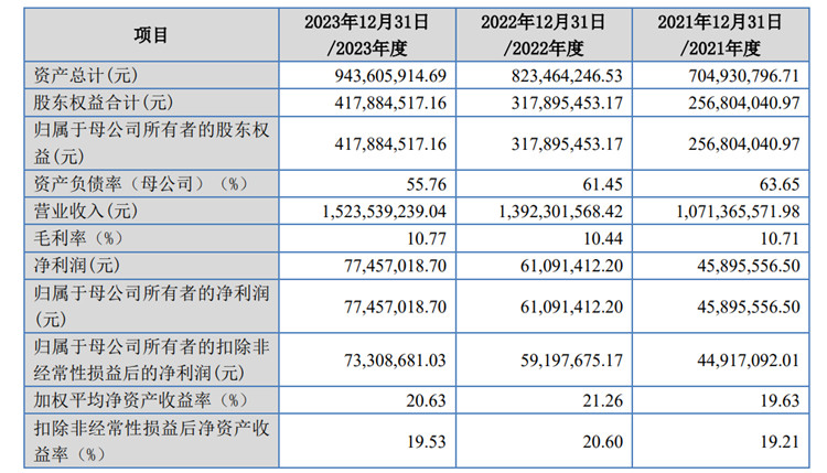 招股书显示,2021年-2023年,太湖远大实现营业收入分别约10.71亿元、13.92亿元、15.24亿元,同期净利润约4589.56万元、6109.14万元、7745.7万元。报告期,该公司营收与净利润持续增长。