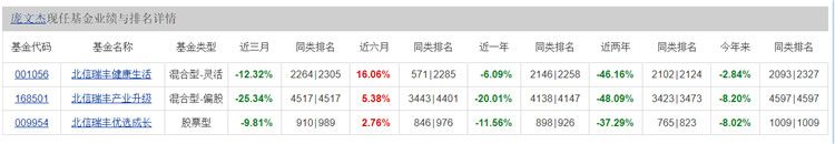 庞文杰历任清华大学生命科学学院院长助理,北京合正致淳投资管理有限公司研究部研究员,泰达宏利基金管理有限公司研究部助理研究员,工银瑞信基金管理有限公司研究部医药研究员。2019年1月30日加入北信瑞丰基金,现任权益投资部基金经理。进一步观察发现,其管理的三只基金今年以来均处于殿后位置。