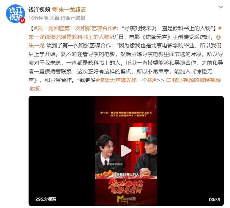 近日,电影《惊蛰无声》主创接受采访时,朱一龙谈到了第一次和张艺谋合作:“因为像我也是北京电影学院毕业,所以我们从上学开始,就不断在看导演的电影,然后排练导演电影里面节选的片段,所以导演对于我来说,一直都是教科书上的人。所以一直希望能够和导演合作,之前和导演一直保持着联系,这次正好有这样的契机,所以非常荣幸,能加入《惊蛰无声》,和导演合作。”