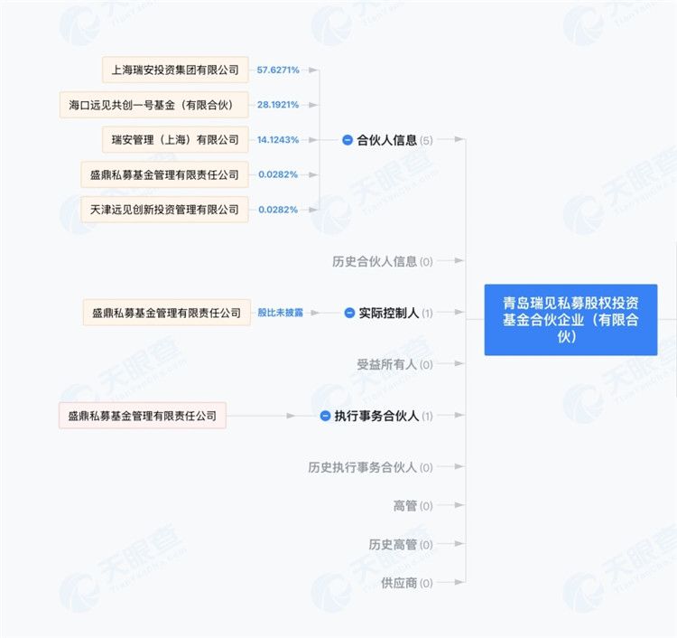 值得关注的是,前述“基金”为青岛瑞见私募股权投资基金合伙企业(下称“青岛瑞见私募”)。据工商资料查询平台天眼查信息显示,青岛瑞见私募成立日期为5月20日,出资额约35.4亿元。