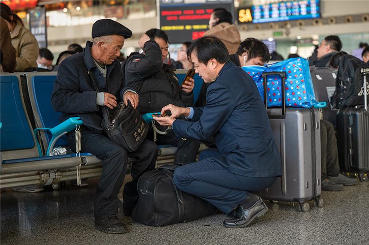 无锡站工作人员为重点旅客做好服务。 张博伦 摄