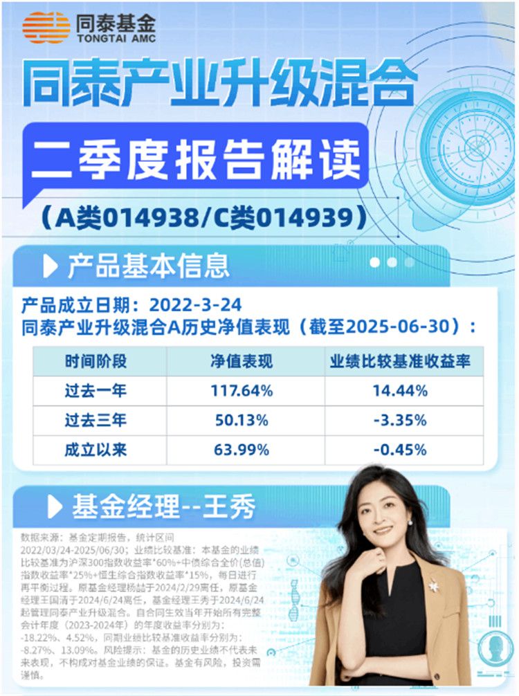 这是同泰基金官方账号“同泰基金e财通”7月11日重点展示的内容,文章题目是《机器人,还能涨吗?听基金经理怎么说》,开头就表示:“2025年已过半,同泰基金旗下同泰产业升级混合的二季报已正式披露。二季报显示,该基金A类份额过去一年的净值增长率为117.64%,同期业绩比较基准收益率为14.44%。在此,同泰基金向各位持有人的信任与支持致以诚挚的感谢。”