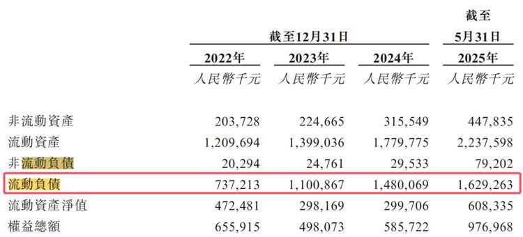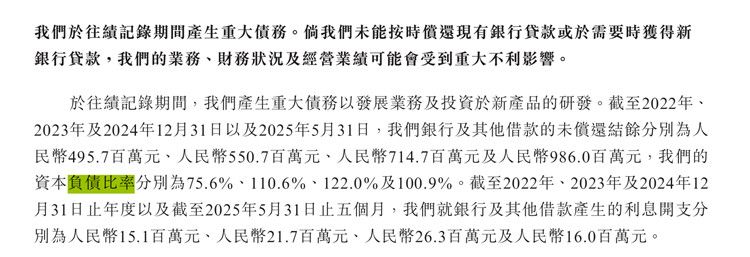 此外,招股书显示,截至2025年5月末,飞骧科技的流动负债为16.29亿元。截至2022年、2023年及2024年12月31日以及2025年5月31日,飞骧科技银行及其他借款的未偿还结余分别为4.96亿元、5.51亿元、7.15亿元及9.86亿元,公司的资本负债比率分别为75.6%、110.6%、122.0%及100.9%。