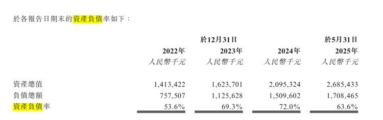 此外,2022-2024年及2025年1-5月,飞骧科技的资产负债率分别为53.59%、69.32%、72.05% 及63.62%,整体呈上升趋势。