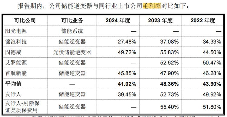 报告期内,麦田能源的储能逆变器毛利率分别为49.92%、52.73%和39.45%,总体出现了大幅下降,而且已经下降到同行均值之下。报告期内,同行可比均值的毛利率分别为43.9%、48.36%和41.02%。