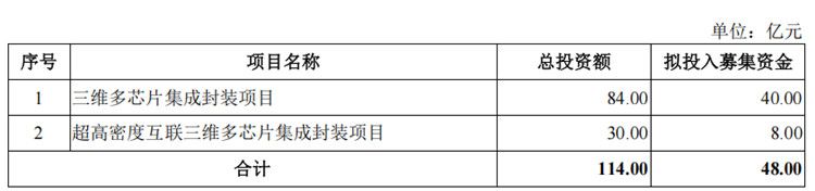 招股书显示,此次盛合晶微拟募集资金48亿元,其中40亿元用于三维多芯片集成封装项目、8亿元用于超高密度互联三维多芯片集成封装项目。