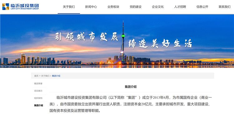 官网信息显示,临沂城投成立于2013年6月,为市属国有企业(商业一类),由市国资委独立出资并履行出资人职责,注册资本金20亿元,主要承担城市开发、重大项目建设、国有资本投资及运营管理等职能。