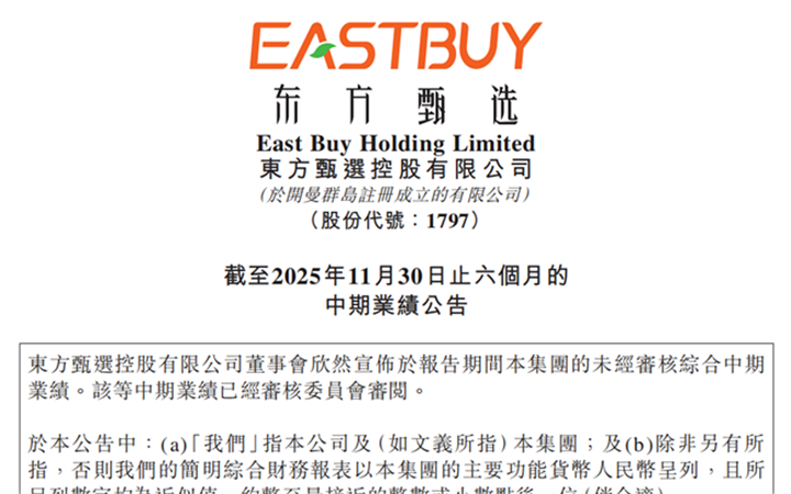 1 月 28 日晚间,东方甄选公布 2026 财年中期业绩。财报显示,截至 2025 年 11 月 30 日止 6 个月,公司总营收超 23 亿元,同比增长 5.7%。若剔除与辉同行直播间产生的总营收金额,东方甄选总营收由截至 2024 年 11 ...