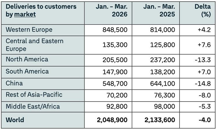 当地时间4月13日,大众汽车集团发布2026年第一季度交付数据。一季度,大众集团全球交付204.89万辆,2025年同期为213.36万辆,同比下降4%。