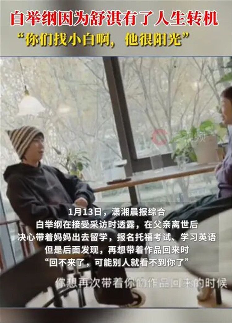 近日,白举纲在接受采访时透露,在父亲离世后,决心带着妈妈出去留学,报名托福考试、学习英语。但是后面发现,再想带着作品回来时,“回不来了,可能别人就看不到你了”“时代的洪流把你推着往前,但只要你不往前,它就会把你压进旋涡,它就会把你使劲往下拖”