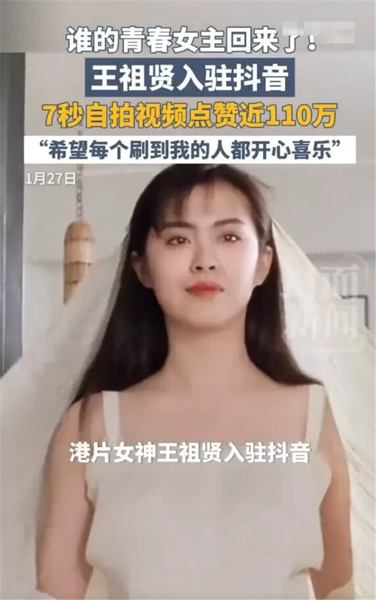 1月27日,演员王祖贤开通新社交账号并发布首条视频,她身穿传统花袄,微笑向网友打招呼:“来跟大家打个招呼,希望每个刷到我的人都开心喜乐。”评论区里,网友们纷纷晒王祖贤旧照、“祖贤路”照片等。截至1月28日晚,她已经收获了90.5万粉丝,7秒视频点赞就超130万,评论超14.7万条。此前,她曾于2025年2月透露自己离开娱乐圈后经营一家艾灸养生会馆。王祖贤因饰演《倩女幽魂》中的聂小倩、《青蛇》中的白素贞等经典角色广为人知。