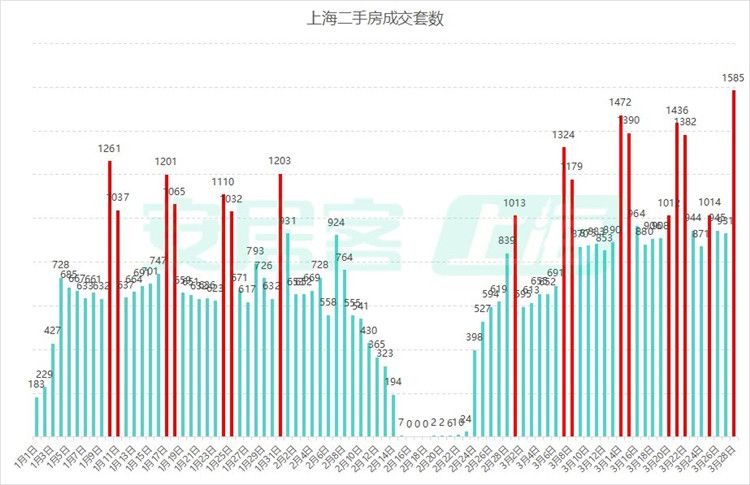 安居客上海监测数据显示,3月28日(周六),上海二手房(含商业)单日网签成交量达1585套,不仅刷新今年年内单日成交纪录,更是一举打破2025年3月15日1473套的前峰值纪录,创下近5年上海二手房单日网签成交历史新高。