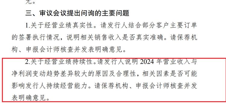 但新恒泰首轮问询中的解释似乎并未完全打消交易所的疑虑,在审议会议提出问询的主要问题中,经营业绩持续性再次被指出, 新恒泰被要求说明2024 年营业收入与净利润变动趋势差异较大的原因及合理性,相关因素是否可能影响公司持续经营能力。