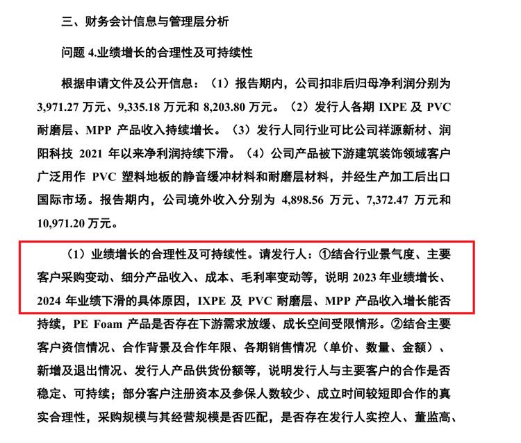 《笔尖网》关注到,早在首轮问询中交易所就关注到上述情形,新恒泰被要求结合行业景气度、主要客户采购变动、细分产品收入、成本、毛利率变动等,说明2023年业绩增长、 2024 年业绩下滑的具体原因。