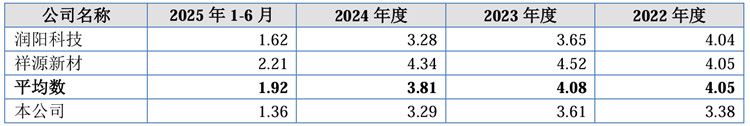 此外,报告期各期,新恒泰的应收账款周转率分别为3.38次、3.61次、3.29次和1.36次,而同期可比上市公司的应收账款周转率平均值为4.05次、4.08次、3.81次、1.92次。不难发现,新恒泰的应收账款周转率略低于同行业可比上市公司平均水平,对此公司解释称主要系公司产品结构、客户类型与同行业可比上市公司有所差异。