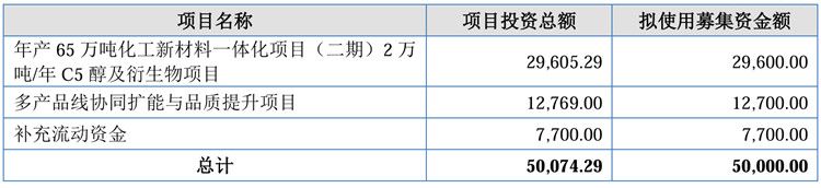 此次IPO,昌德科技计划募集资金5亿元,所募资金中7700万元用于补充流动资金,其余资金投向年产65万吨化工新材料一体化项目(二期)2万吨/年C5醇及衍生物项目、多产品线协同扩能与品质提升项目。