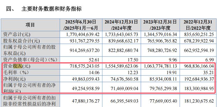 2025年12月26日,北交所官网发布消息显示,昌德新材科技股份有限公司IPO获得受理。招股书显示,2022年至2024年及2025年上半年,昌德科技营业收入分别为9.69亿元、10.64亿元、15.55亿元和7.19亿元;归母净利润分别为1.83亿元、7976.53万元、7146.90万元、4925.50万元。不难发现,2023年及2024年,昌德科技出现增收不增利的情况。