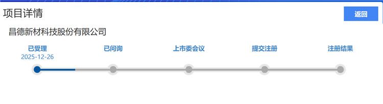 2025年12月26日,北交所官网发布消息显示,昌德新材科技股份有限公司(以下简称昌德科技)IPO获得受理。该公司刚向股东派发“红包”提振信心,转身便伸手向市场募资“补血”引发关注。