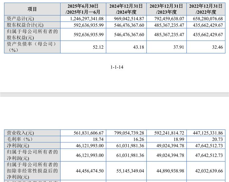 招股书显示,2022年-2024年及2025年上半年(以下简称“报告期内”),定西高强各期营业收入分别为4.47亿元、5.92亿元、7.99亿元和5.62亿元,净利润分别为4764.25万元、4902.44万元、6103.2万元和4612.2万元,扣非后归母净利润则分别为4203.26万元、4489.09万元、5514.53万元和4445.65万元。