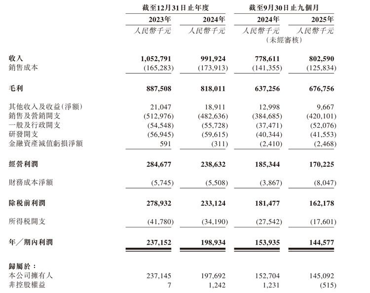 2023年、2024年以及2025年1-9月份(以下简称报告期),汉方制药实现收入分别为10.5亿元、9.9亿元和8.0亿元,同期年内利润分别为2.4亿元、2.0亿元和1.4亿元。可见,报告期内,该公司的净利润出现了下降。