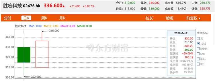 胜宏科技以“年内最大H股IPO”之姿闯入资本市场视野,3月29日,胜宏科技发布关于刊发H股招股说明书、H股发行价格上限及H股香港公开发售等事宜的公告。4月21日,胜宏科技正式在港交所成功挂牌上市,上市首日股价报收315港元,涨幅高达50.09%。