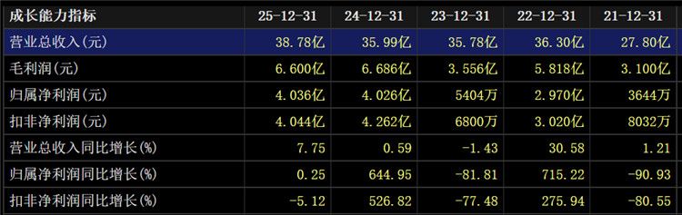 东方财富上财务数据显示,从2021年至2025年,石羊农科分别实现营收27.8亿元、36.3亿元、35.78亿元、35.99亿元、38.78亿元,同比分别变动1.21%、30.58%、-1.43%、0.59%、7.75%;分别实现归母净利润0.36亿元、2.97亿元、0.54亿元、4.03亿元、4.04亿元,同比分别变动-90.93%、715.22%、-81.81%、644.95%、0.25%。