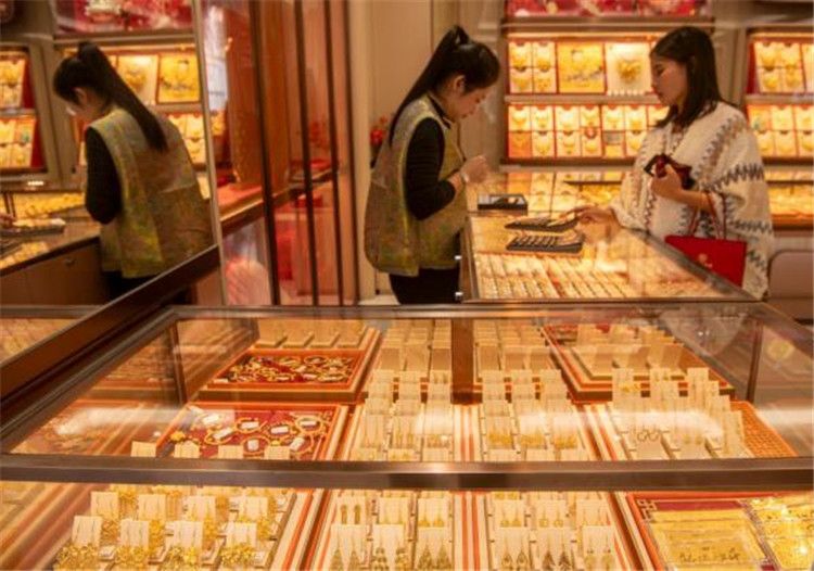 1月29日,顾客在海南省琼海市的一家金店选购金饰。新华社发(蒙钟德摄)