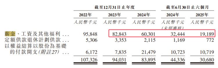 根据招股书,2023年、2024年及2025年上半年,硅基智能员工成本中“薪金、工资及其他福利”分别为8284.3万元、6030.1万元、1918.9万元,分别同比减少约14%、27%、41%,降幅呈扩大趋势。