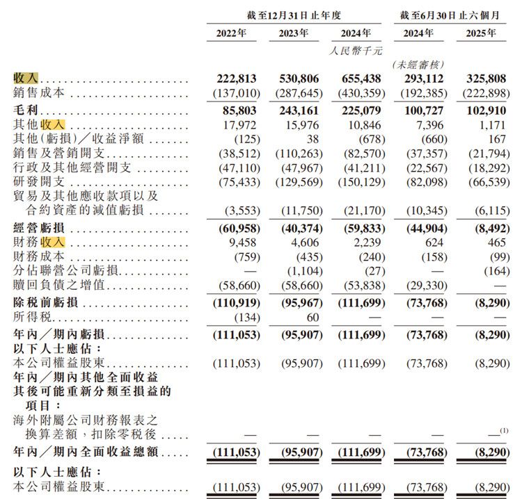招股书显示,2022至2024年,硅基智能的收入分别为2.23亿元、5.31亿元、6.55亿元,复合年增长率达71.5%;2025年上半年,公司实现收入3.26亿元,同比增长11.15%,增速放缓。报告期内,经调整净利润分别为-4622.1万元、-2941.2万元、-3524.2万元、528.9万元,三年半累计亏损逾1亿元;经营活动现金流量净额分别为-10813.2万元、-5080.8万元、-8221.6万元、-4302.4万元。