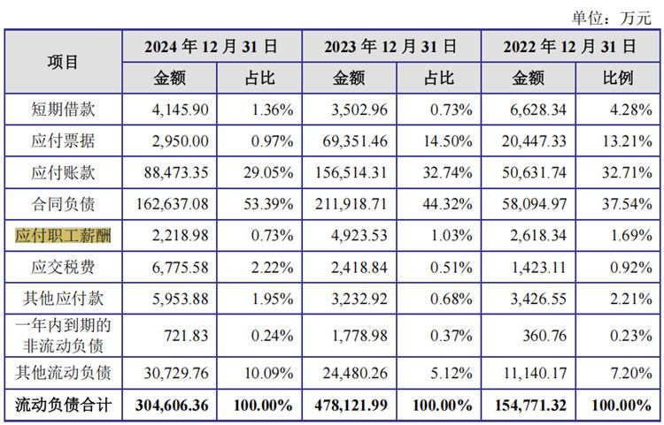 对于员工数量大起大落,江松科技在招股书中表示,2023年当年光伏市场行情较好,下游客户对设备的需求较大,公司增加员工人数以满足下游客户订单交货需求。2024年光伏行业阶段性供需失衡,下游客户需求放缓,公司精简人员,员工数量有所减少。