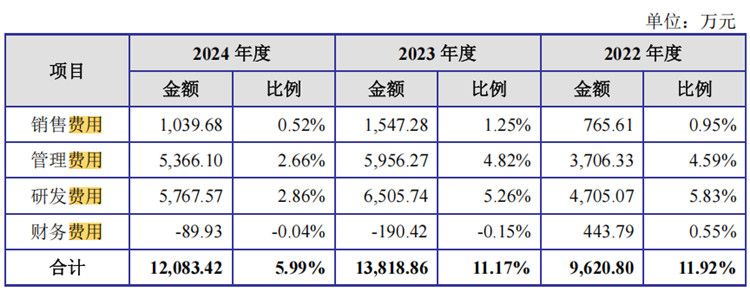 除了减员之外,江松科技还对费用支出进行了大幅削减。2024年,江松科技期间费用率由11.2%大幅降至6.0%。