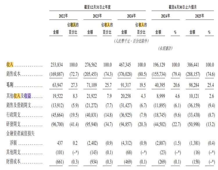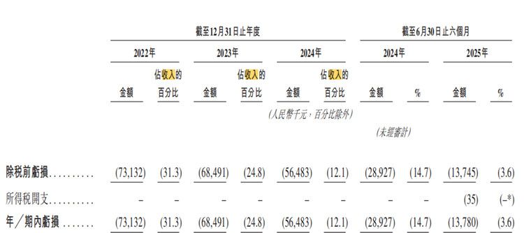招股书显示,2022年-2024年及2025年1-6月,乐动机器人实现营业收入分别为2.34亿元、2.77亿元、4.67亿元及3.86亿元。同期,净利润分别为-0.73亿元、-0.68亿元和-0.56亿元、-0.14亿元。
