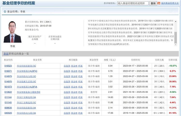 值得关注的是,这是华安基金近一年流失的第二位绩优老将。相关媒体报道称,2025年5月,李欣因个人原因离任全部在管的7只产品,李欣拥有约15年证券、基金从业经历,在华安基金担任基金经理近10年。